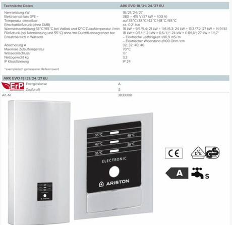 Ariston Lydos karstā ūdens tvertne ar digitālu displeju un gatavu dušu