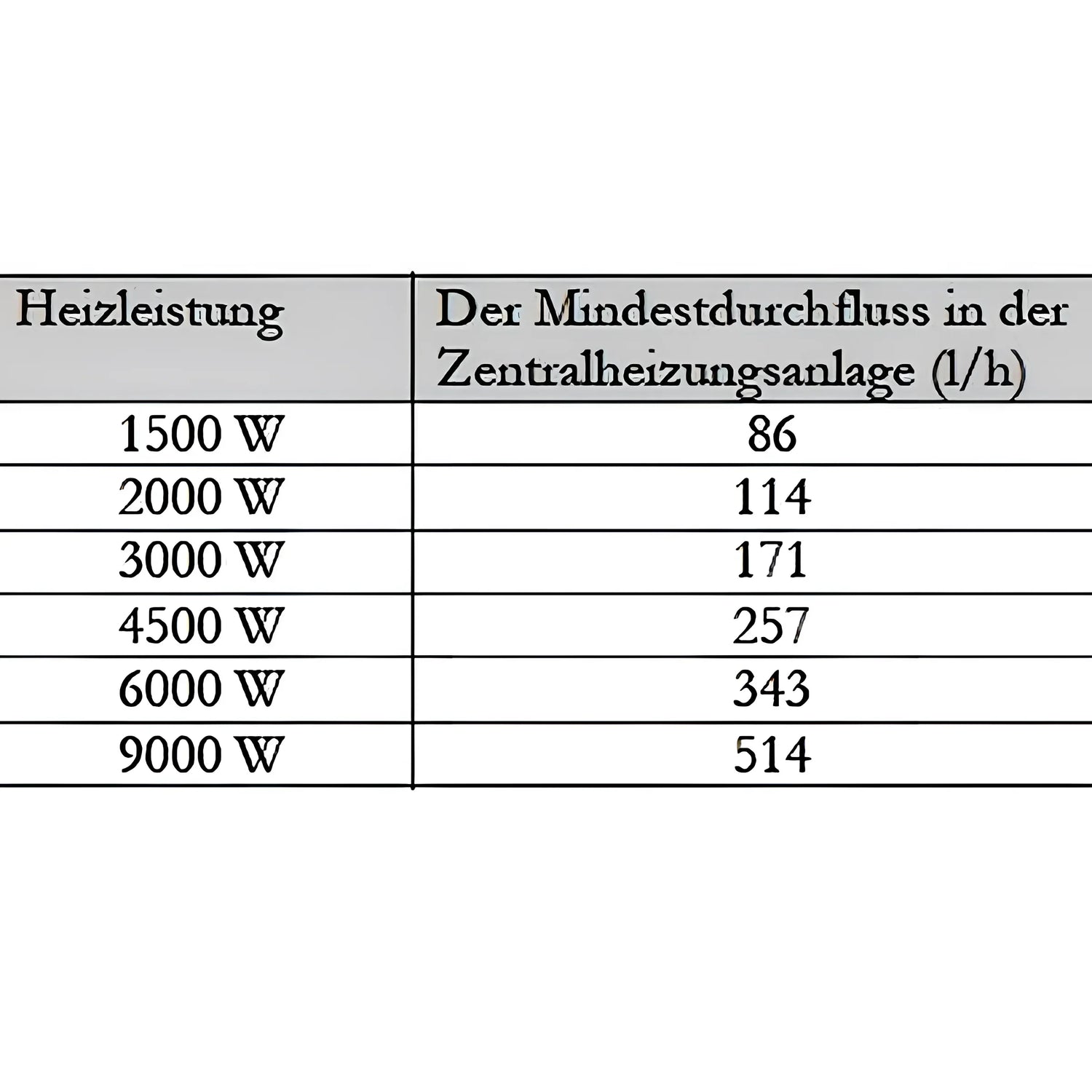 • Minimālā plūsma: 6,0 kW/343 l/h