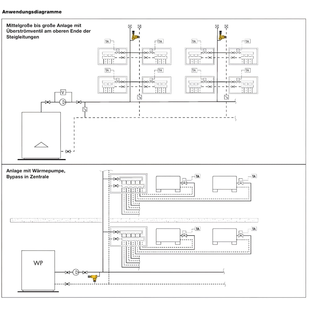Piemērots apkures, dzesēšanas un siltumsūkņu sistēmām ar mainīgu plūsmas ātrumu. Īpaši noderīgi sistēmās ar vairākiem patērētājiem, izpildmehānismiem vai ātruma regulējamiem sūkņiem, lai nodrošinātu minimālu plūsmas un spiediena ierobežojumu.