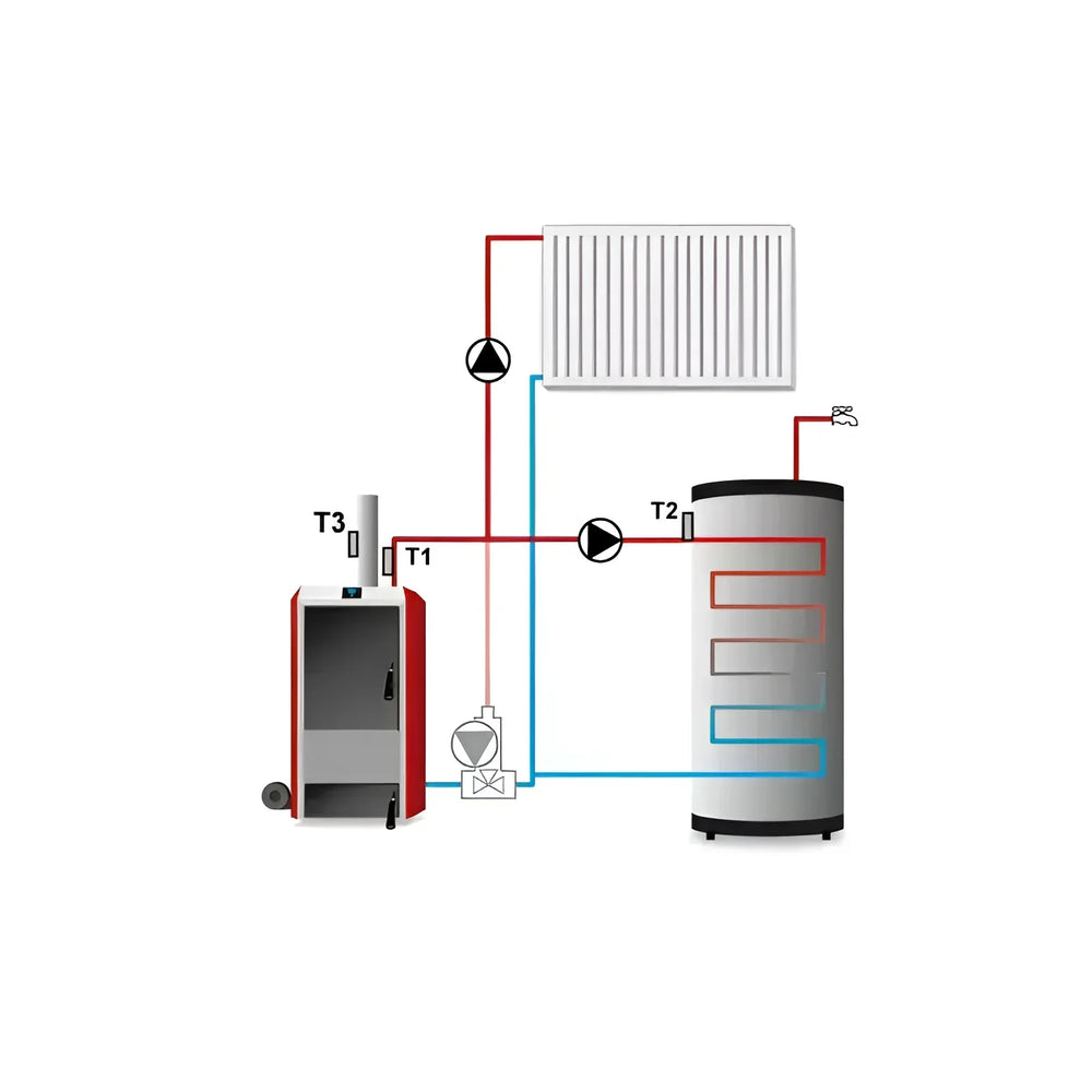 Integrētā temperatūras aizsardzība novērš pārkaršanu, savukārt dūmgāzu sensors optimizē katla efektivitāti un palielina jūsu drošību. Turklāt regulatoram ir izturīgi sensori ar temperatūras izturības diapazonu no -25°C līdz 90°C, padarot tos īpaši robustus un uzticamus.